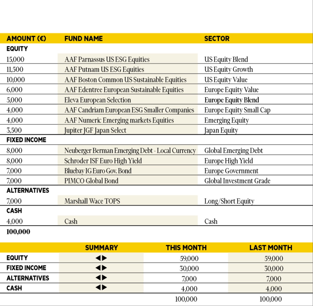 “In November the performance of the portfolio was flat. A bit of pull-back on the emerging and Asian equity funds, and on US growth as well, was compensated by the good results of the European equity funds. The US earning season was better than expected, and the Fed is closer to cutting interest rates, albeit with some reluctance. European credit has a positive month once again, as our Italian govies funds. We keep our allocation unchanged, still favoring Italian govies, Euro high yield, a globally diversified equity exposure and some US dollar.”