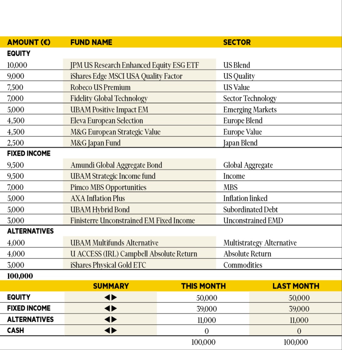 “Risk assets performed strongly in October once again, with Asia and emerging market equity taking the baton from US tech. TT Emerging Markets Unconstrained was up over 10 per cent in October, followed by Alger Focus Equity which returned 5 per cent. All selections were positive in October, but the Vontobel TwentyFour Strategic Income fund produced the lowest return at 0.4 per cent. Overall, we continue with our pro-risk positioning across the model portfolio. Our selections are unchanged.”